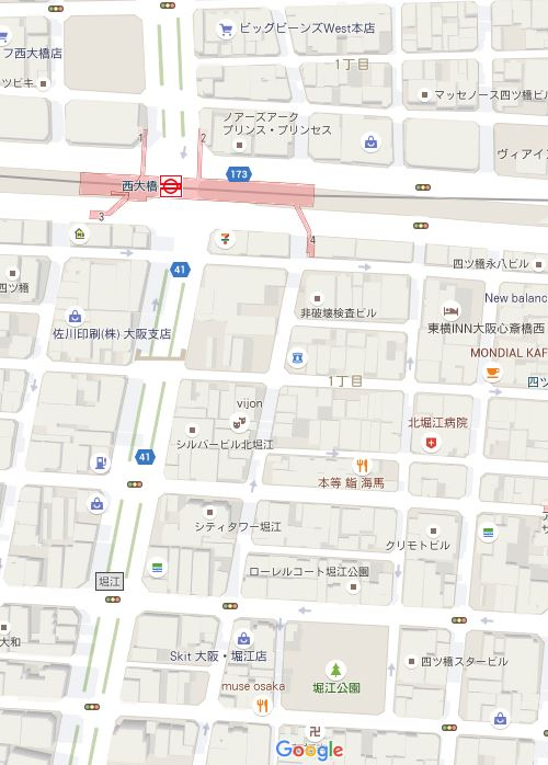 〒550-0014 大阪市西区北堀江1-10-13 北堀江コレット602